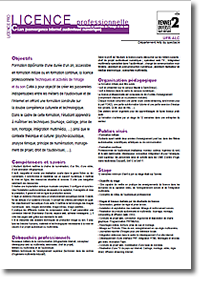D'une durée de 1 an, elle a pour objectif de créer les passerelles indispensables entre les métiers de l'audiovisuel et de l'Internet en offrant une formation construite sur la double compétence culturelle et technologique.